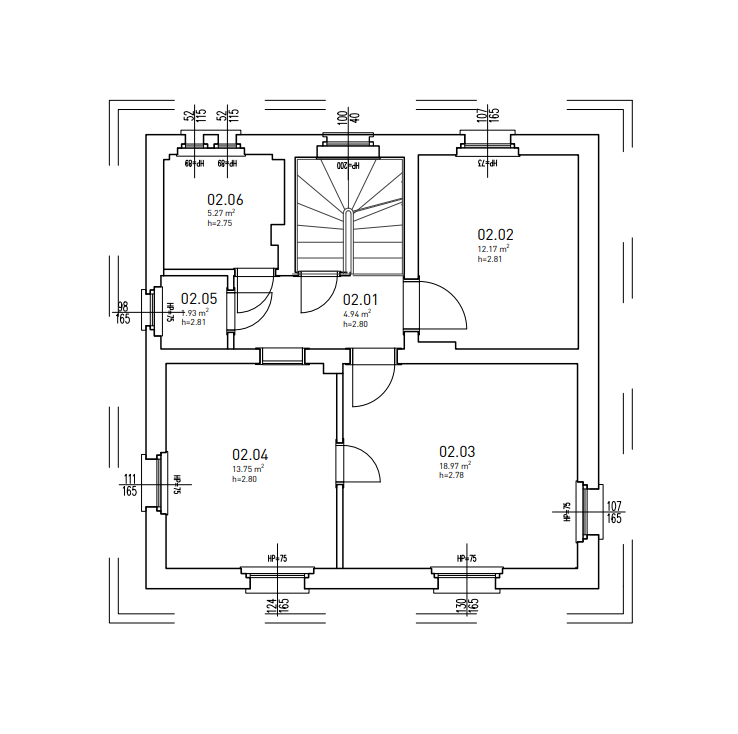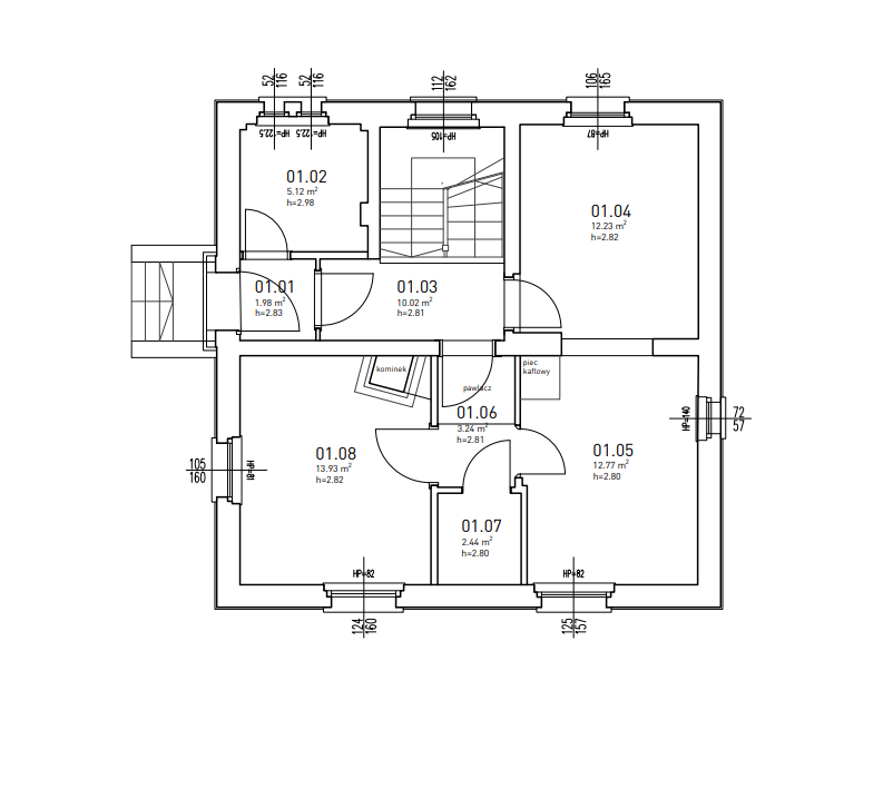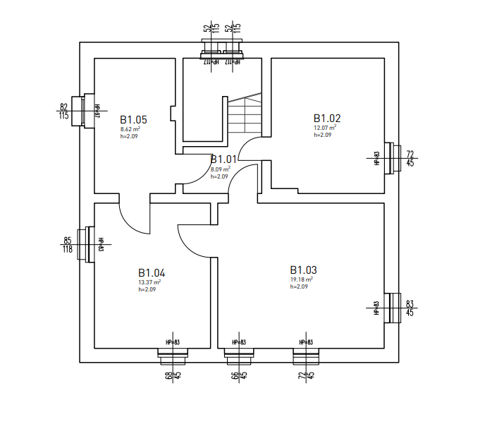Powierzchnia całkowita domu: 199,24 m² (piwnica, parter, piętro, poddasze)