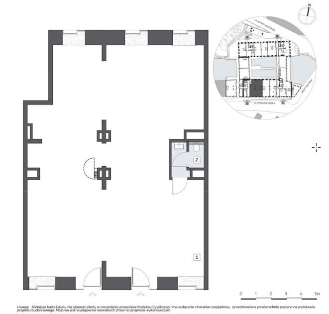 Lokal o powierzchni 165,54 m² znajduje się w stanie deweloperskim, co daje pełną swobodę aranżacji. Otwarta przestrzeń pozwala na łatwy podział na mniejsze sekcje, dzięki czemu możesz stworzyć wnętrze w pełni dostosowane do swoich potrzeb.