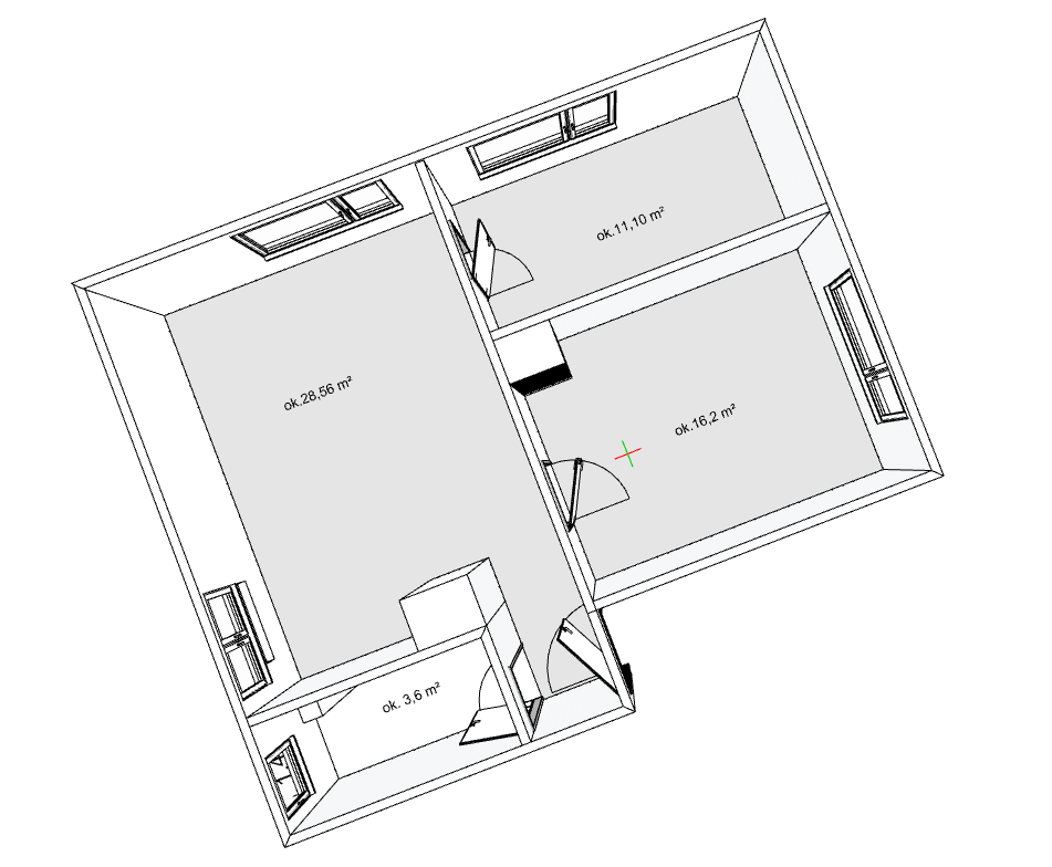 - pokój dzienny z aneksem kuchennym ok. 25 m² (możliwość łatwego wydzielenia osobnej kuchni i powrotu do pierwotnego rozkładu),